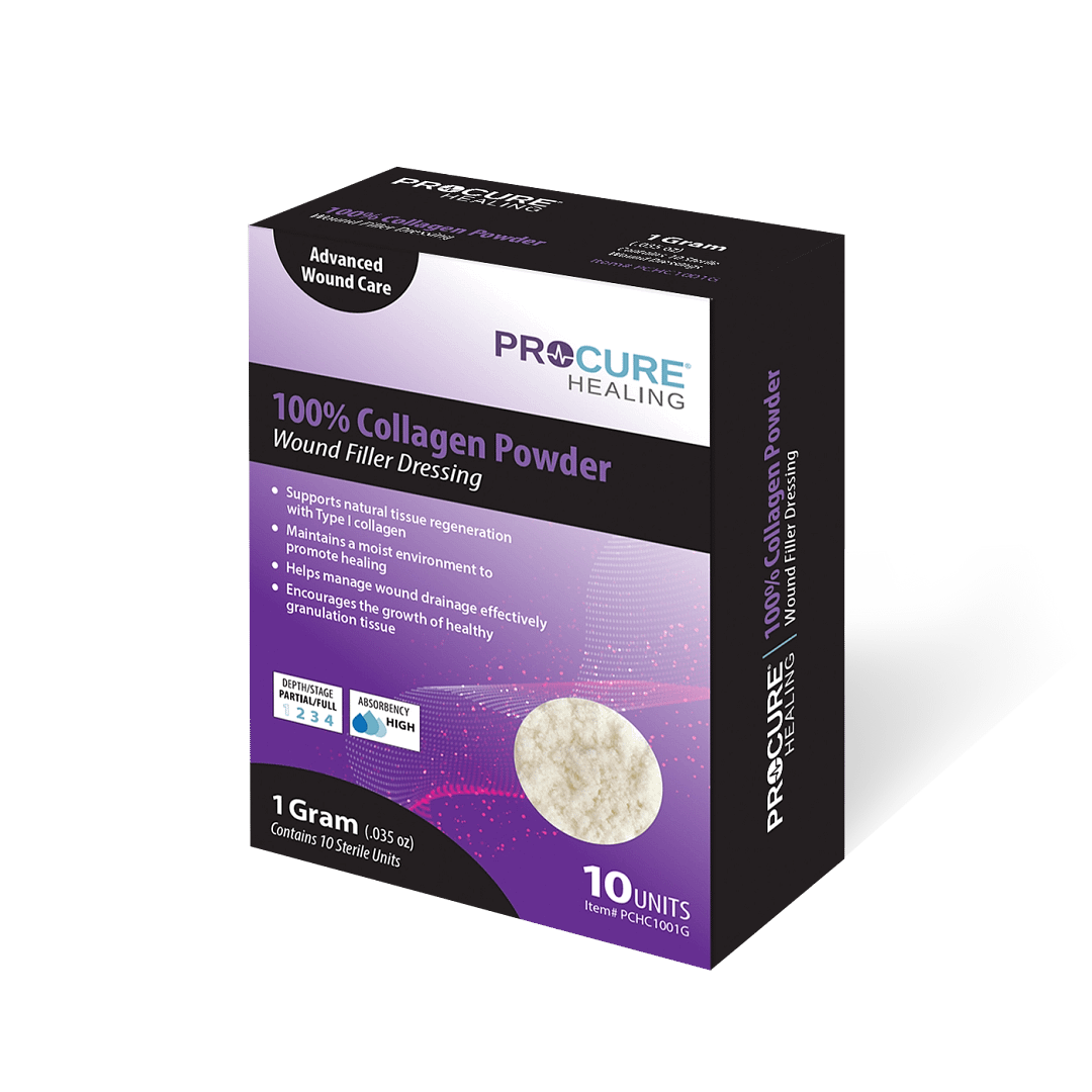- Powder filler gently conforms to wound contours