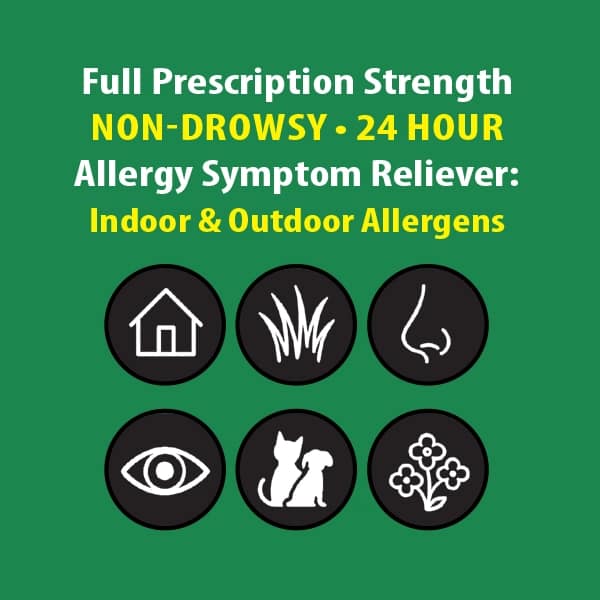 • Temporarily relieves the symptoms of hay fever or other upper respiratory allergies: nasal congestion, runny nose, sneezing, itchy nose, itchy watery eyes