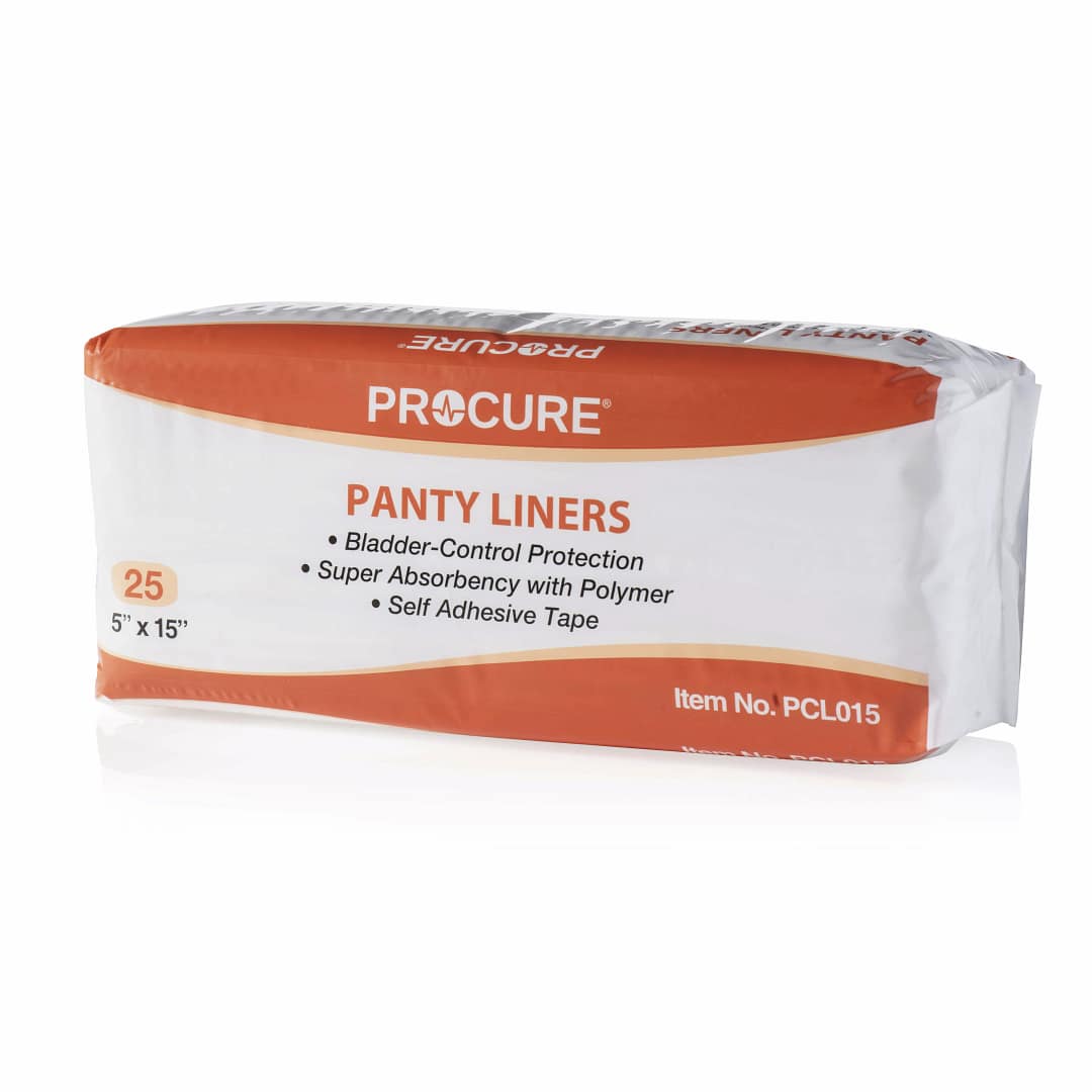 ProCure Panty Liners are highly absorbent liners for affordable, effective protection of bed linens and clothing. These panty liners feature an adhesive strip, holding the liners in place during daily activities. These liners are used for bladder-control protection and are super absorbent to protect bed linens and clothing.