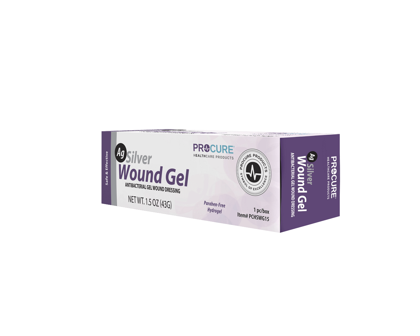 ProCure Silver Wound Gel is an antibacterial gel wound dressing formulated with silver ions to help protect against bacterial growth while maintaining a moist healing environment. Under the supervision of a healthcare professional, this paraben-free wound gel is indicated for the management of first and superficial second degree burns, wounds such as stasis ulcers, pressure ulcers, diabetic ulcers, lacerations, abrasions, skin tears, surgical incision sites, device insertion site wounds, graft sites and donor sites.